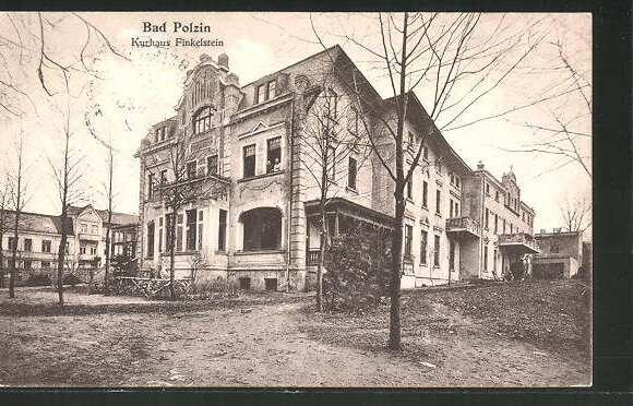 I to właśnie w tym okresie intensywnego rozwoju Bad Polzin, szanowany jego mieszkaniec Julius Finkelstein postanowił wybudować dom kuracyjny, który wpisze się do historii miasta na lata. Miejsce powstania nowego sanatorium nie było przypadkowe. W przepięknym otoczeniu, tuż przy Parku Zdrojowym w północno-wschodniej jego części, nieopodal elitarnej Promenady Bismarka – ulicy, na której mieszkali najbardziej wpływowi mieszkańcy, kupcy i urzędnicy dawnego Bad Polzin – około 1910 roku powstaje bardzo ładny 2,5 kondygnacyjny budynek, która daje początek domu kuracyjnemu Finkelstein (niem. Kurhaus Finkelstein).